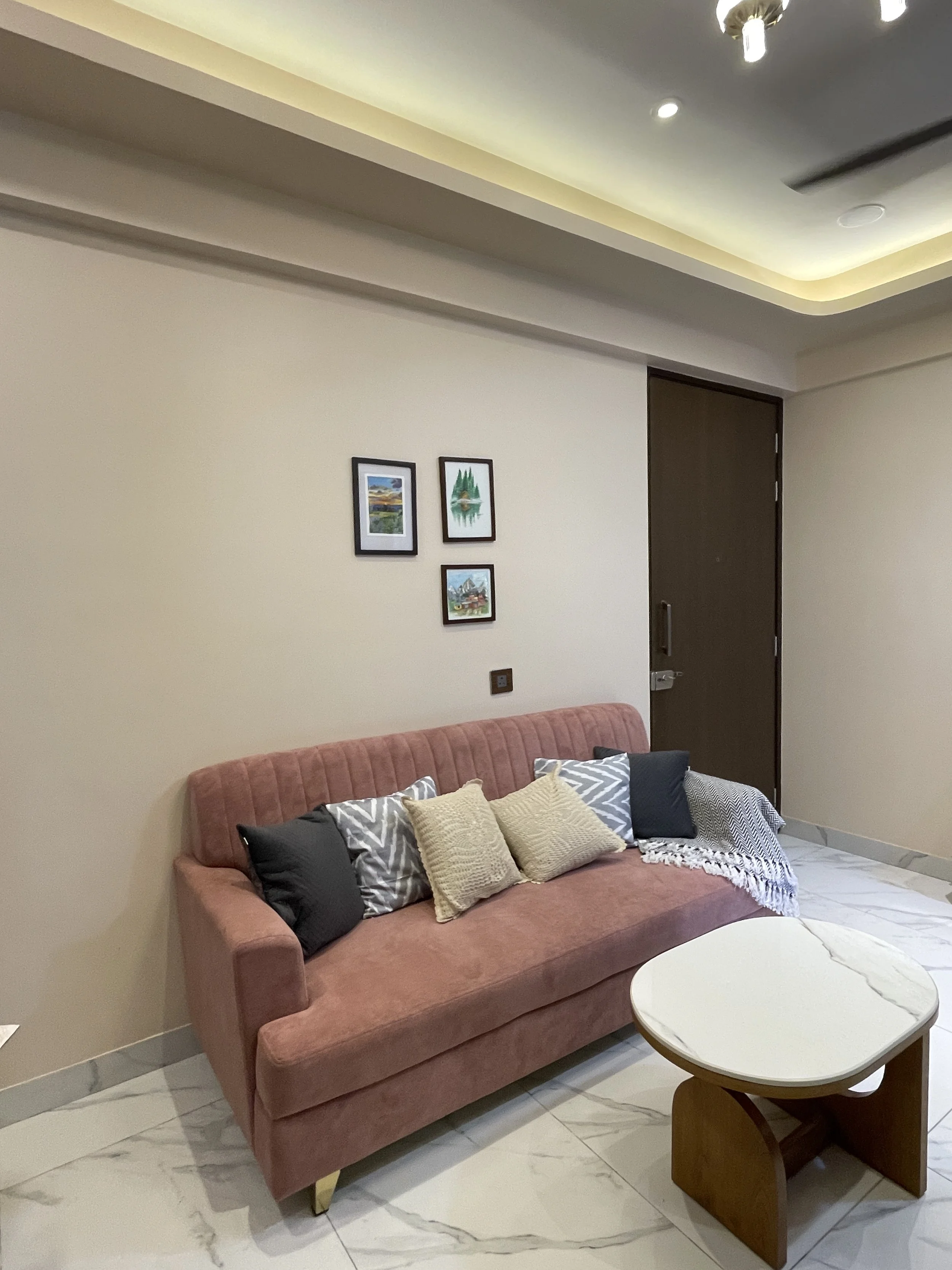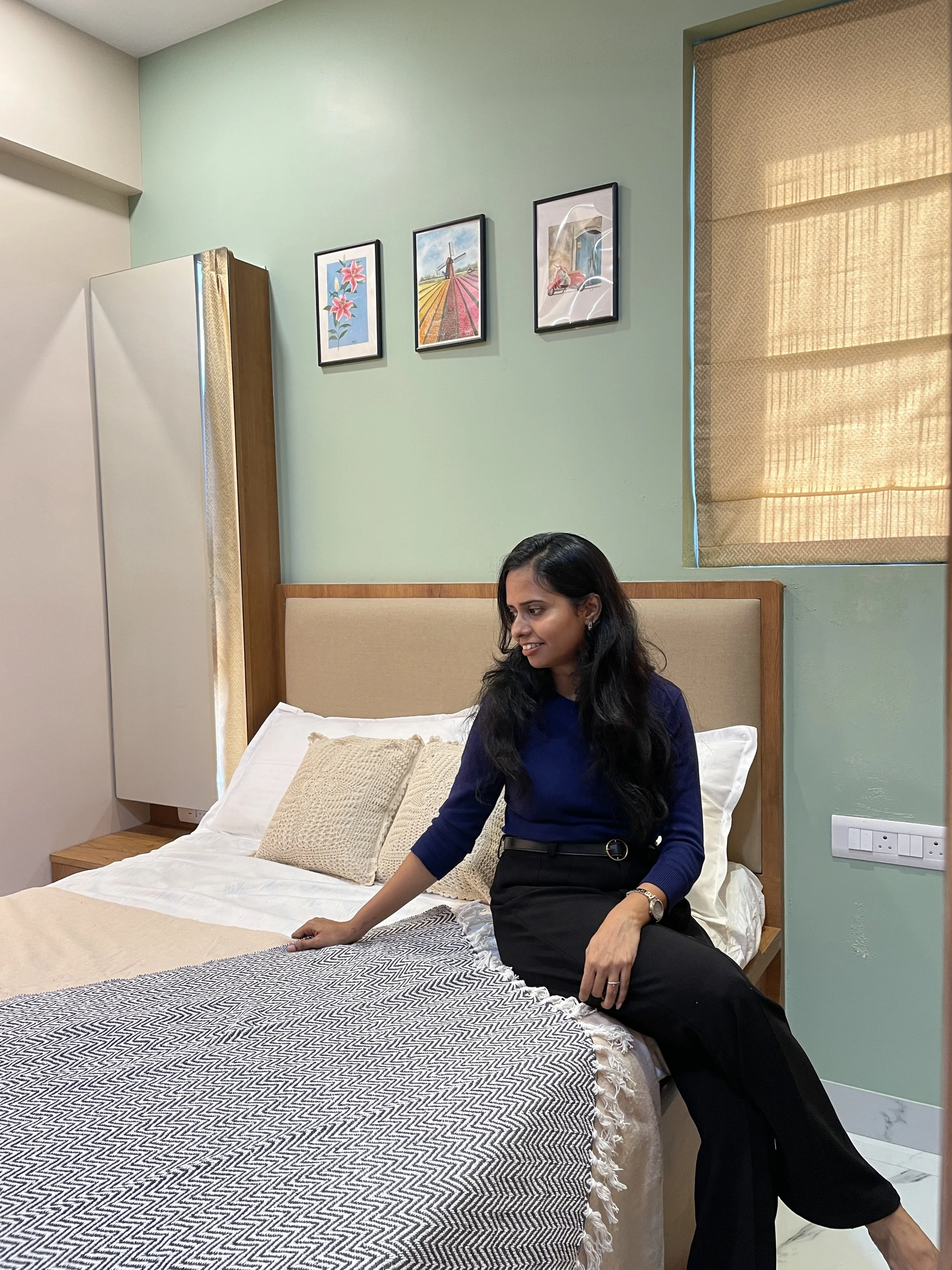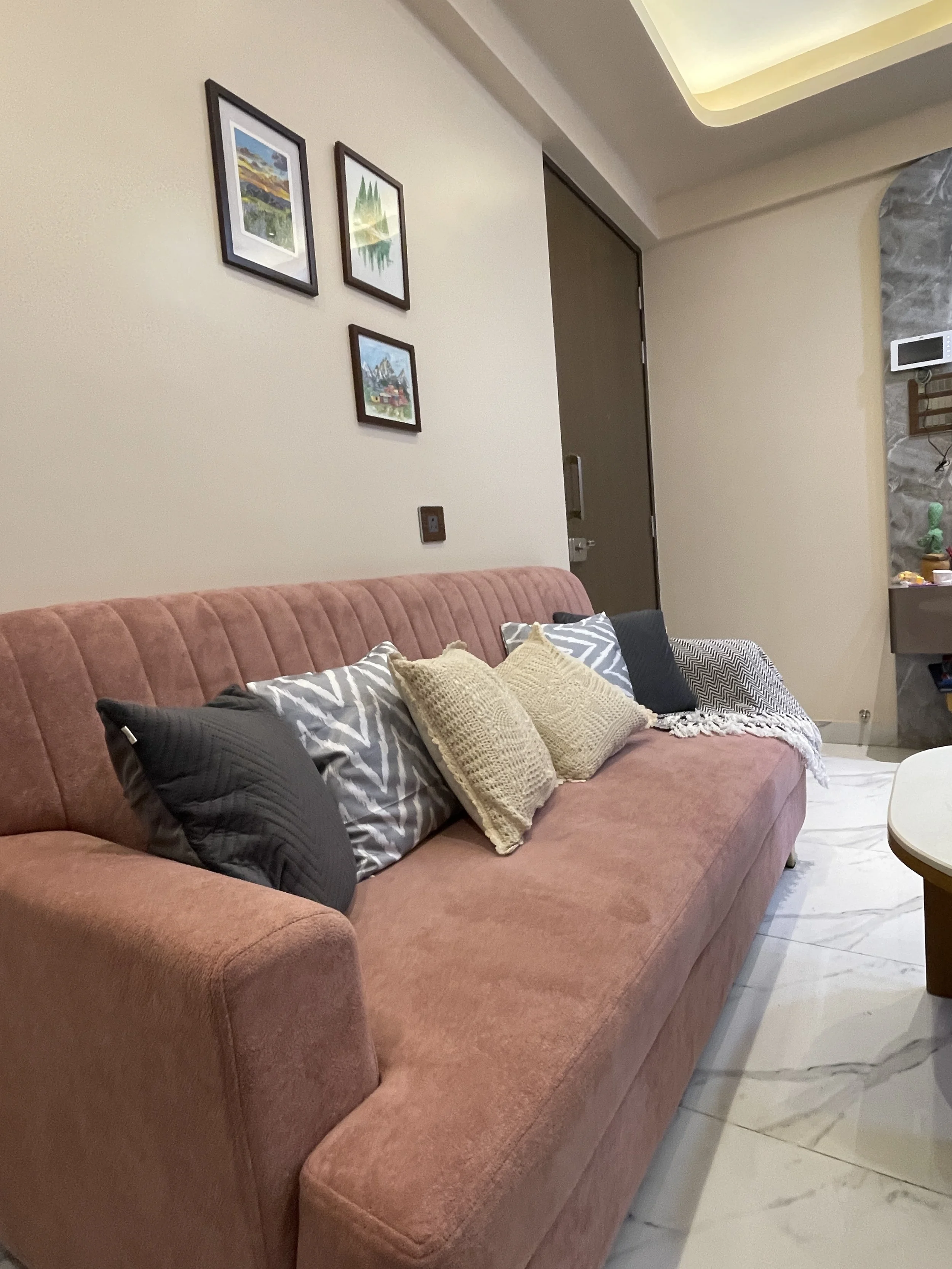 This 700 sq. ft., two-bedroom apartment in Thane reimagines urban living through a lens of organic warmth and deliberate color. By balancing tactile textures with strategic focal points, the space feels expansive yet deeply intimate. The home’s identity is anchored in a "cozy-minimalist" philosophy, where every element serves to soften the living experience:
